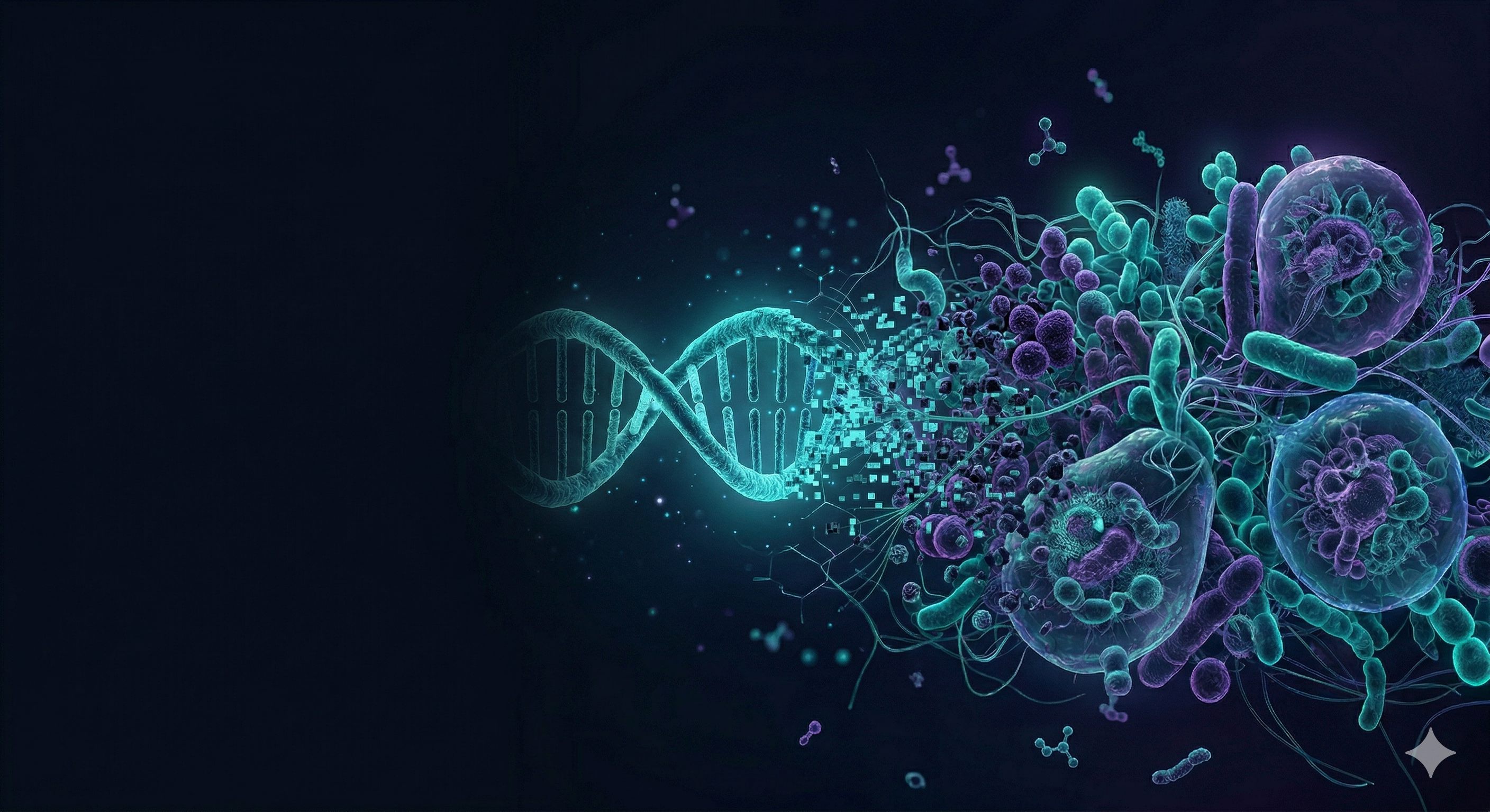 We do not just integrate data — we interpret it. Every multi-omics project ends with a coherent biological narrative: which organisms are doing what, which pathways are active, and how they connect across molecular scales. That is the "From Atoms to Systems" principle.
